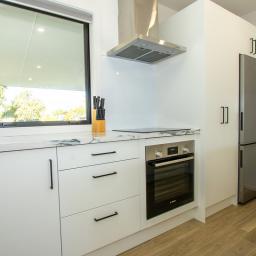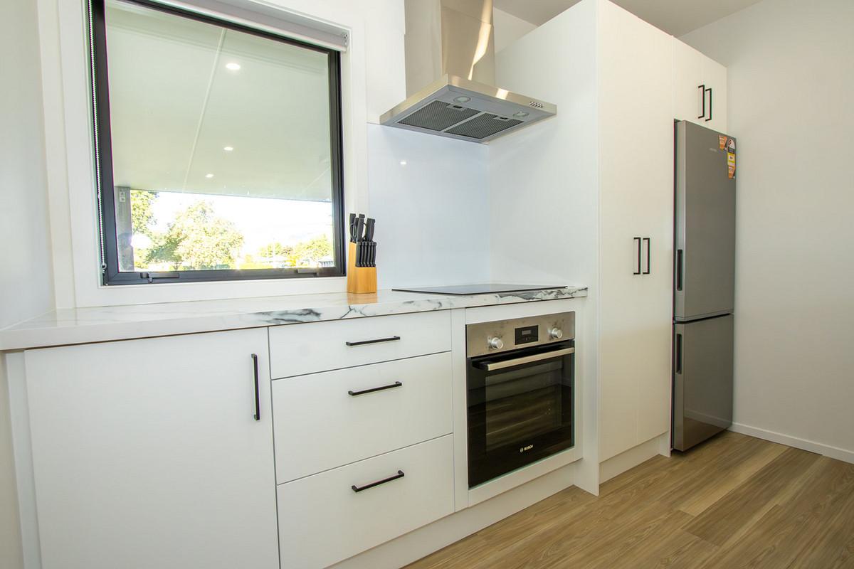 The open-plan living area is complimented by the stylish kitchen with all the appliances required for permanent or part-time living.