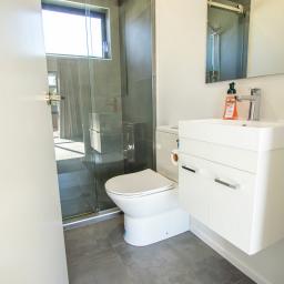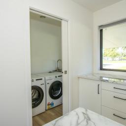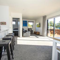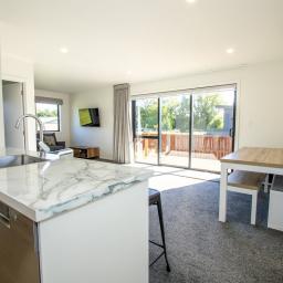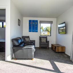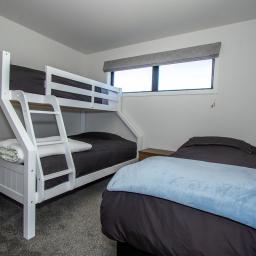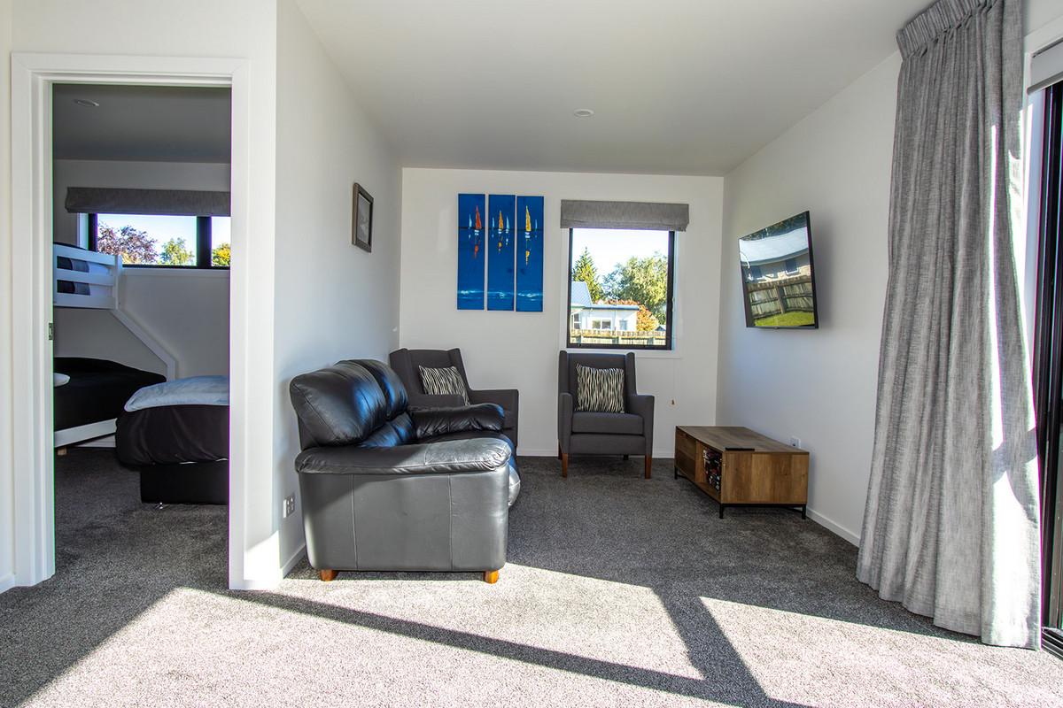 The master bedroom has a king bed and ensuite, while the second bedroom can comfortably sleep 4 with a double lower bunk bed, single above and single bed alongside. Both bathrooms have fully tiled showers, a toilet, handbasin, heater and heated towel rail. The separate laundry has space for a washing machine, dryer, tub and storage if required.