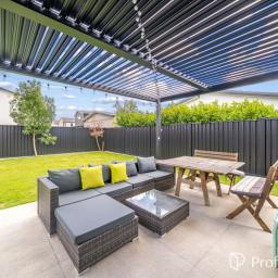 Large open-plan living flows out to a sunny, fully fenced backyard with a concrete patio and pergola. It’s the perfect setup for year-round entertaining, whether it’s summer BBQs in the sun or relaxed evenings outdoors while staying sheltered.
