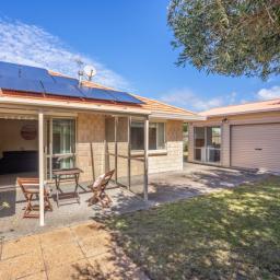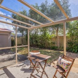 The kitchen is well equipped with a double oven, gas hob, double-drawer dishwasher, and a bay window looking out to the street. The dining and lounge areas both open through sliding doors to the outdoor sitting area, creating easy indoor–outdoor flow for relaxing or entertaining. The fully fenced backyard provides a secure space for children, pets, or simply enjoying the outdoors.