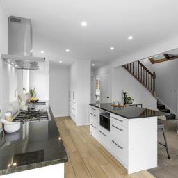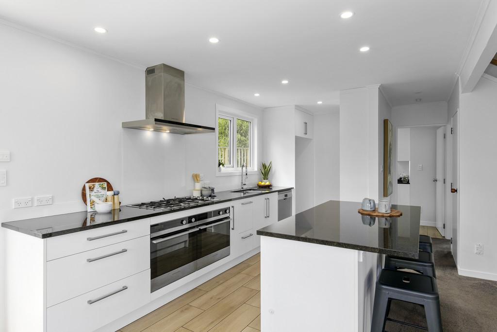 The entertainers' kitchen is finished to a high standard with stone benchtops, premium appliances, and tiled floors. The large kitchen island is sure to impress and is open plan with the dining and living areas, creating the perfect space for hosting family and friends. Downstairs, you'll find a generous double bedroom, full bathroom, laundry area, and ample storage.