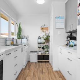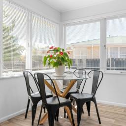 The kitchen and dining area are positioned to capture good natural light and provide a practical layout for everyday living. With modern cabinetry and clean finishes, it’s a space that feels both functional and fresh. Accommodation includes three well-proportioned bedrooms, serviced by a tidy family bathroom with bath and separate toilet — ideal for busy households.
