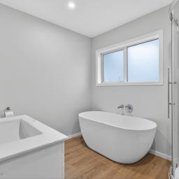 Accommodation is thoughtfully laid out with three genuine double bedrooms. The master suite is positioned for comfort and privacy, complete with a walk-in wardrobe and large sleek ensuite. A sliding door opens directly onto the deck, perfectly positioned to soak up all-day sun. The second and third bedrooms both include built-in wardrobes and are serviced by a spacious, modern family bathroom.
