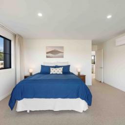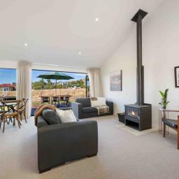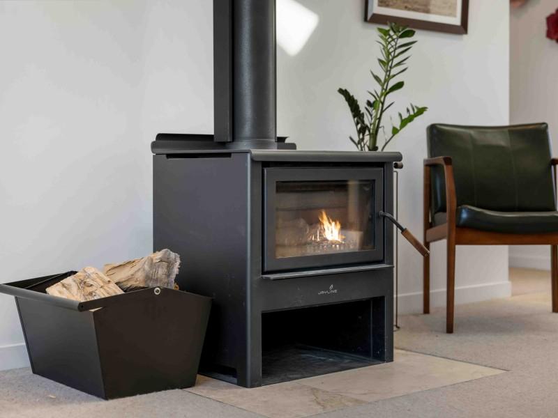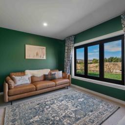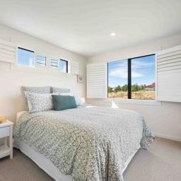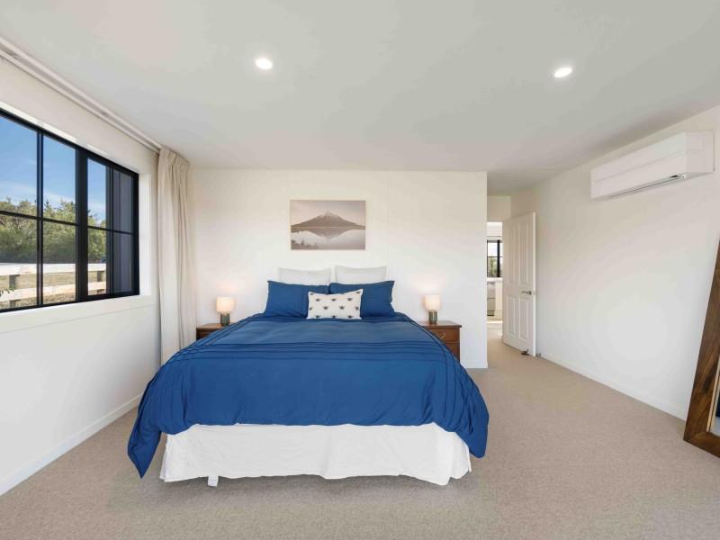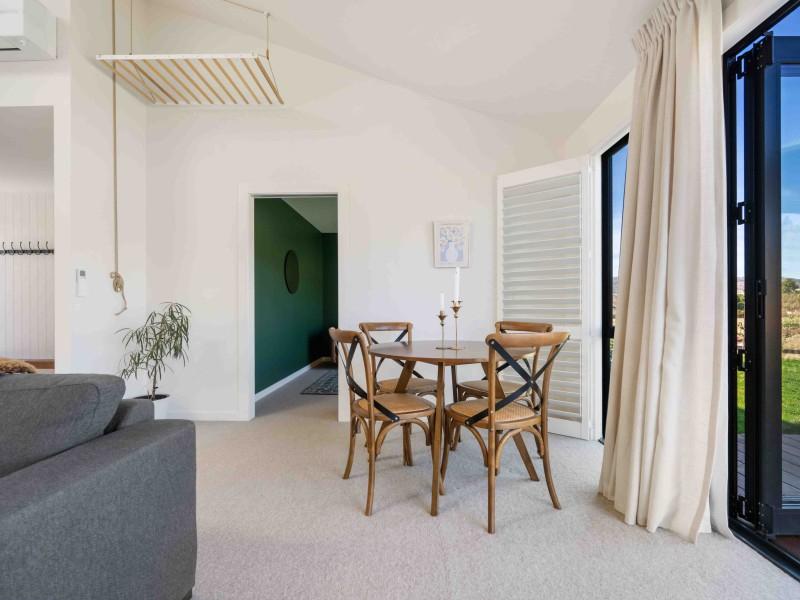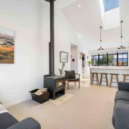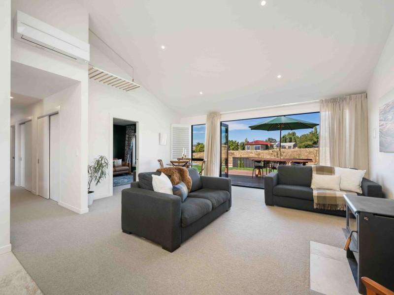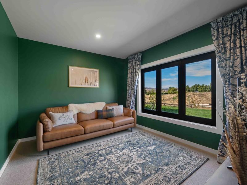 A separate media room, finished in rich dark green tones, creates a cosy den-like retreat, while a well-appointed separate laundry and internal access double garage add excellent everyday convenience. Comfort is assured year-round with a log burner, two heat pumps and panel heaters, and as a modern build the home benefits from current insulation and window standards.