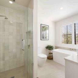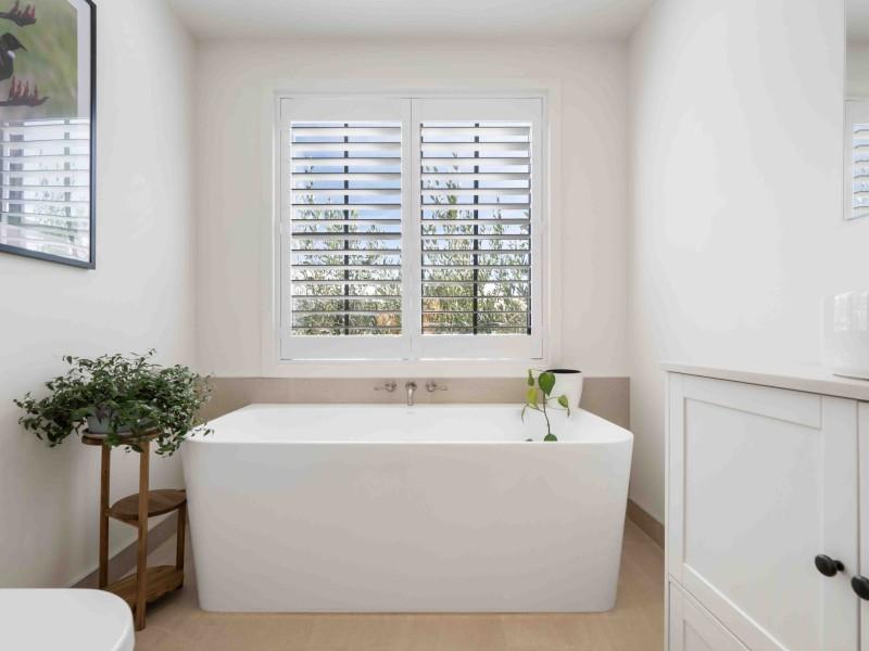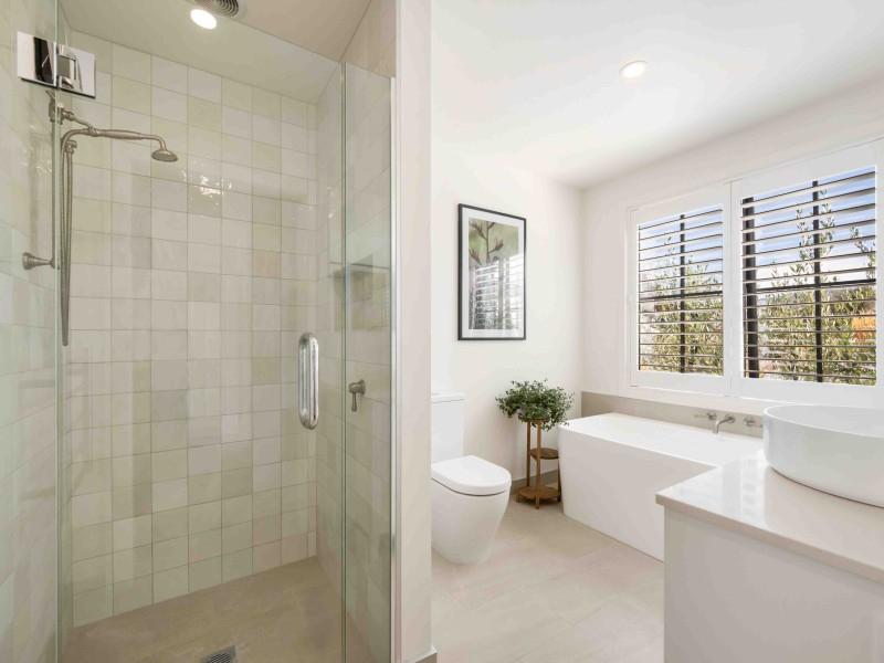 Accommodation has been thoughtfully designed for comfort and privacy. The primary suite sits privately away from the main living area and features a walk-in wardrobe and a beautifully appointed tiled ensuite with a luxurious separate bath and shower, finished with a freestanding shaker vanity and designer basin. Two additional double bedrooms include built-in wardrobes, while the fourth bedroom offers flexibility as a single bedroom or home office. The main bathroom continues the same high-quality finish, with a tiled shower and shaker-style cabinetry creating a cohesive look throughout.
