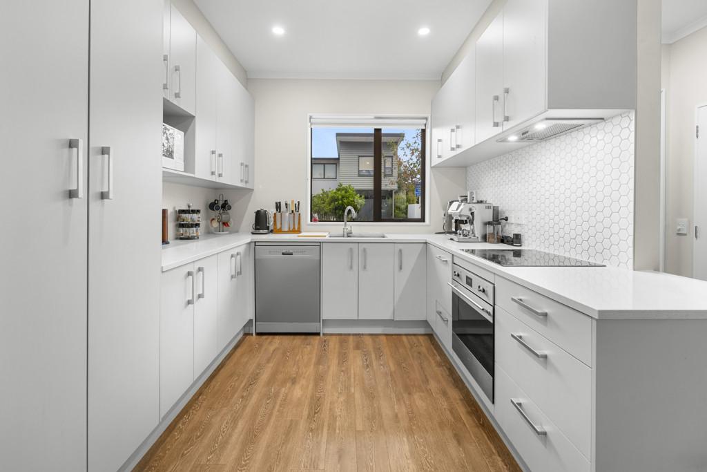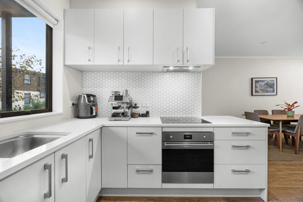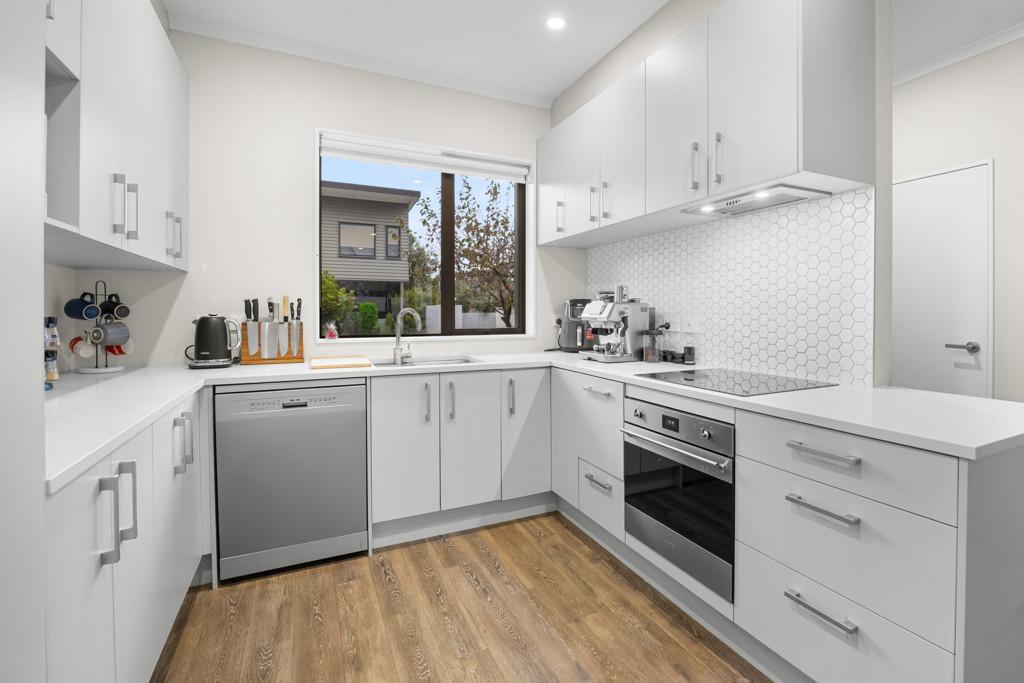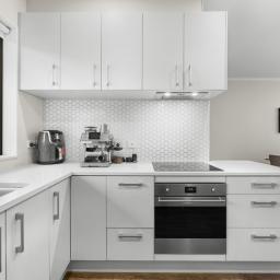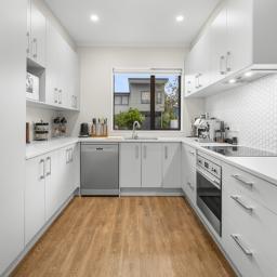 The high stud ground floor - open plan for living, cooking, and dining - is underpinned by durable timber flooring while crisp white walls and LED lighting create a visual spaciousness and contemporary vibe. A bank of doors connects the interior with a charming north-facing courtyard patio and fully fenced garden - a secluded spot for outdoor entertaining and growing your own herbs and veges. The larger than expected kitchen continues the white theme in copious cabinetry and incorporates stainless-steel appliances set beneath composite stone benchtops.