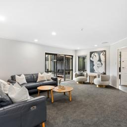 The open plan kitchen, dining and family living zone creates a natural place to connect, with the stunning designer kitchen delivering generous bench space, premium appliances and a large butler's pantry. A concealed "secret" room off the pantry adds a smart extra for storage or hobbies. Close the lounge off with cavity sliders and enjoy movie nights in the second living area without interrupting the main zone.