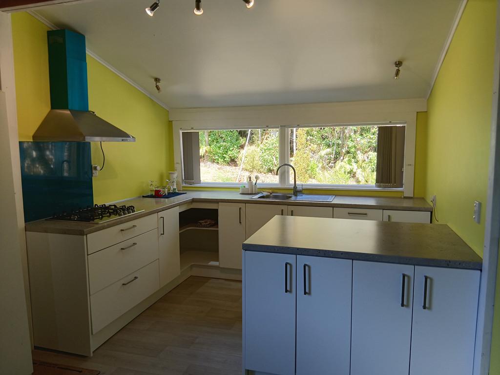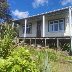 The charming 1910s three-bedroom home has been updated with a new roof 2025 (excluding verandah), and a bright, modern kitchen. The bathroom is a blank canvas and includes a new shower, vanity, and tapware, ready for the newer owner to install. Stay comfortable year-round with a heat pump and an open fire for cozy winter nights. Enjoy expansive views of lush surrounds with a glimpse of the sea, this is a hidden paradise!