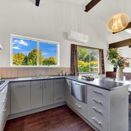 The home is situated on a good-sized land parcel well back from the road with its own access, it has an untapped sunny outdoor living aspect which is just ripe for some creative landscaping and design allowing the setting sun to become one with the home. Vaulted ceilings create a stunning open sense of space and flair with the central hub being a wonderful classic log burner heat sync situated in the open plan living, dining and kitchen areas. It is a wonderful feature of this classic style and the opportunity to add value to this great floor plan is obvious.