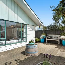 Bathed in sun throughout the day, the home features a semi open-plan lounge, dining, and kitchen area that flow to a generous deck providing an ideal spot for a morning coffee, an afternoon G&T or alfresco entertaining.