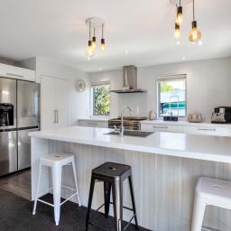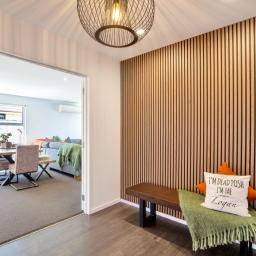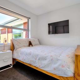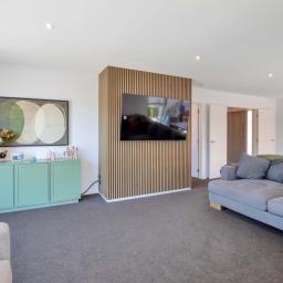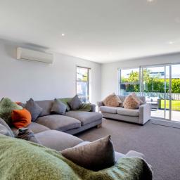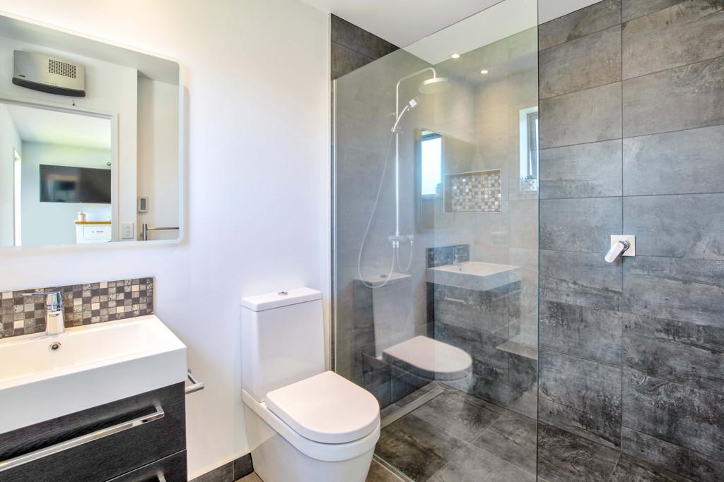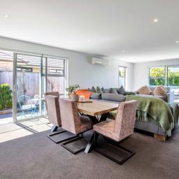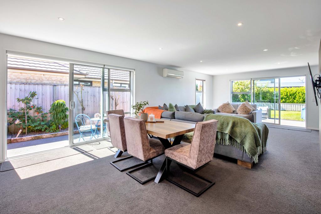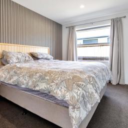 The heart of the home features spacious open-plan living with a contemporary design that flows seamlessly to the outdoor entertaining area, the perfect spot for summer BBQs, relaxing with friends, or keeping an eye on the kids while they play in the yard. Designed with comfort in mind, the home includes a heat pump for year-round climate control, along with underfloor heating in three bedrooms and the bathrooms, providing added warmth and luxury during the cooler months. A four bedroom home that offers good storage, making it ideal for families or those needing extra space for guests or a home office. The modern tiled bathrooms add a stylish touch and enhance the home's overall quality and finish.