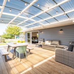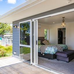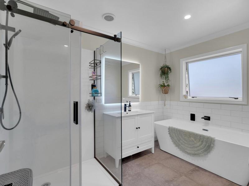 Accommodation includes three well-appointed bedrooms, with the master suite enjoying direct access out to the deck — a lovely way to start the day with a morning coffee or unwind in the evening. The tiled ensuite is beautifully finished, offering a sense of luxury and comfort.