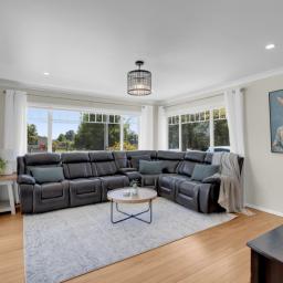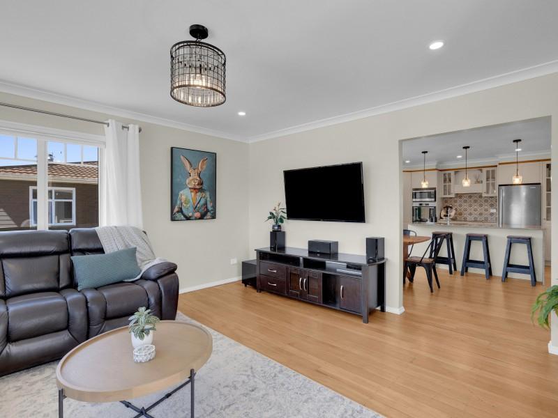 The property offers two separate living zones, providing flexibility for families who appreciate both connection and space. A separate lounge at the front of the home is filled with natural light thanks to its large windows, creating a warm and inviting place to relax.