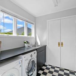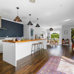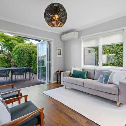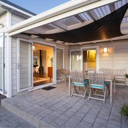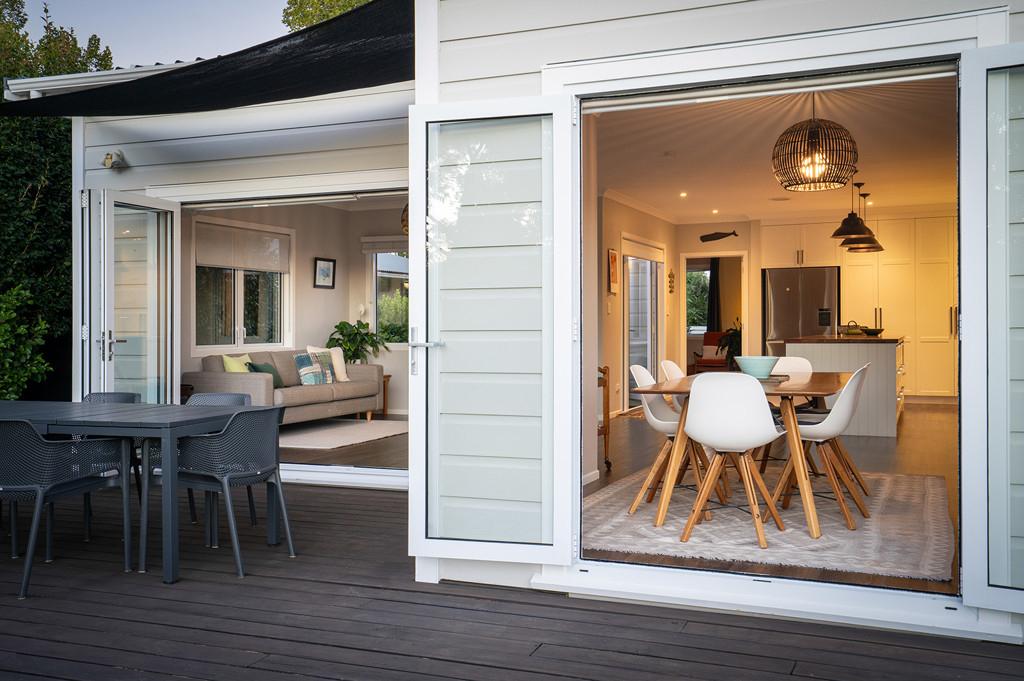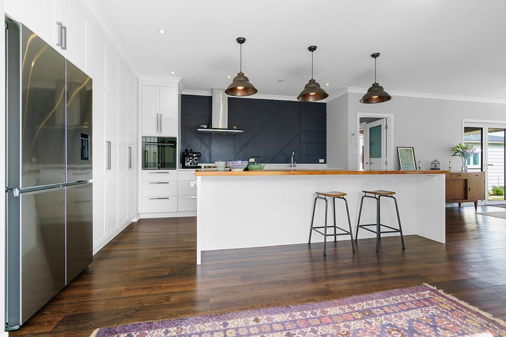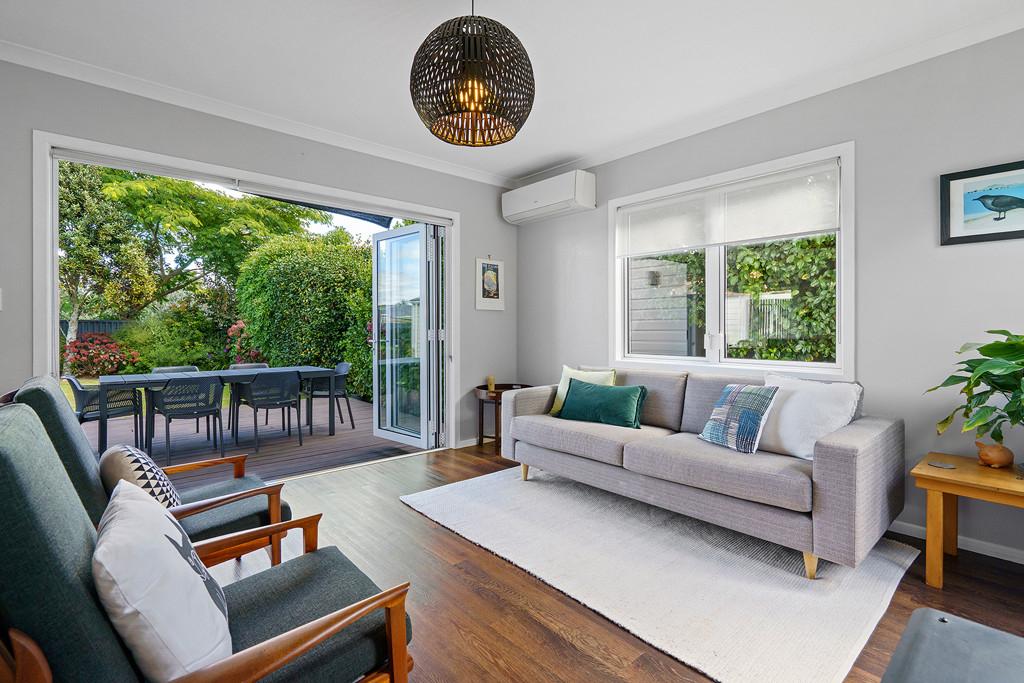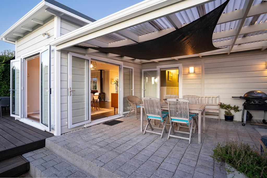 The kitchen is a true showstopper - both stylish and practical, with generous storage, quality appliances, and a substantial recycled Rimu benchtop. A private deck off the kitchen is perfect for morning coffee or a quiet weekend read, while the dining and living areas flow effortlessly to a large entertaining deck and covered patio - ideal for relaxed summer barbecues and alfresco gatherings overlooking the immaculate private garden with raised vegetable beds.