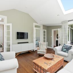 - Four distinct living and dining areas offering flexibility for family life, entertaining, or working from home