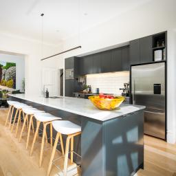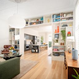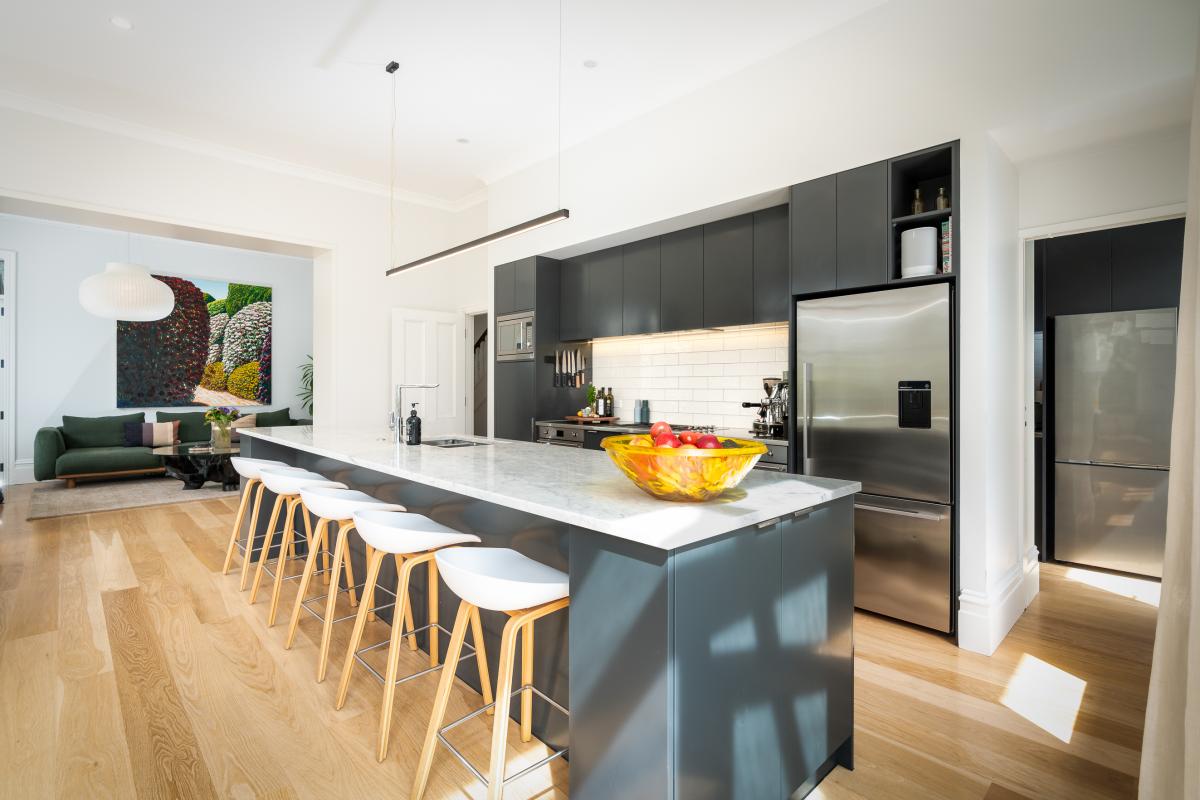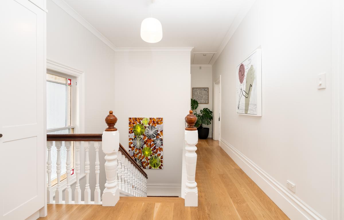 Originally built in 1910 and comprehensively reimagined, 18 Austin Street is a refined study in layering heritage with restraint. The pressed tin ceilings are spectacular. The stud height is dramatic. Stained glass, sash windows and timber floors anchor the home in its era, yet the overall mood is calm, tonal and entirely current.