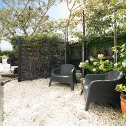 - Sheltered courtyard with roses, citrus and raised beds, garden design by Rachael Matthews at Hedge