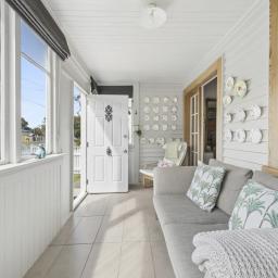 This lovely, well presented home with character features has a separate lounge, open plan kitchen/dining, three bedrooms, a large separate laundry, two toilets, and a sunroom with outlook to the street, a lovely spot for reading or relaxing.