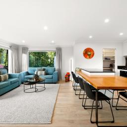 From the moment you arrive, the home makes an impression. Clean modern lines and a combination of Dimondclad and Abodo timber cladding create a distinctive architectural presence, while beautifully landscaped grounds featuring sculpted topiary trees provide a sense of privacy and calm.
