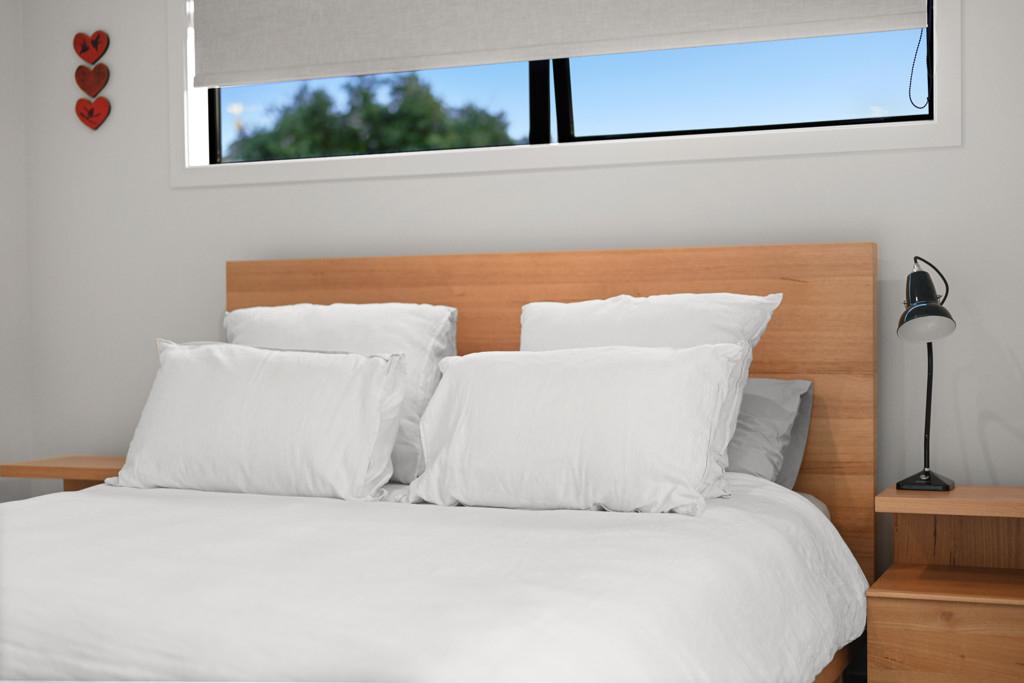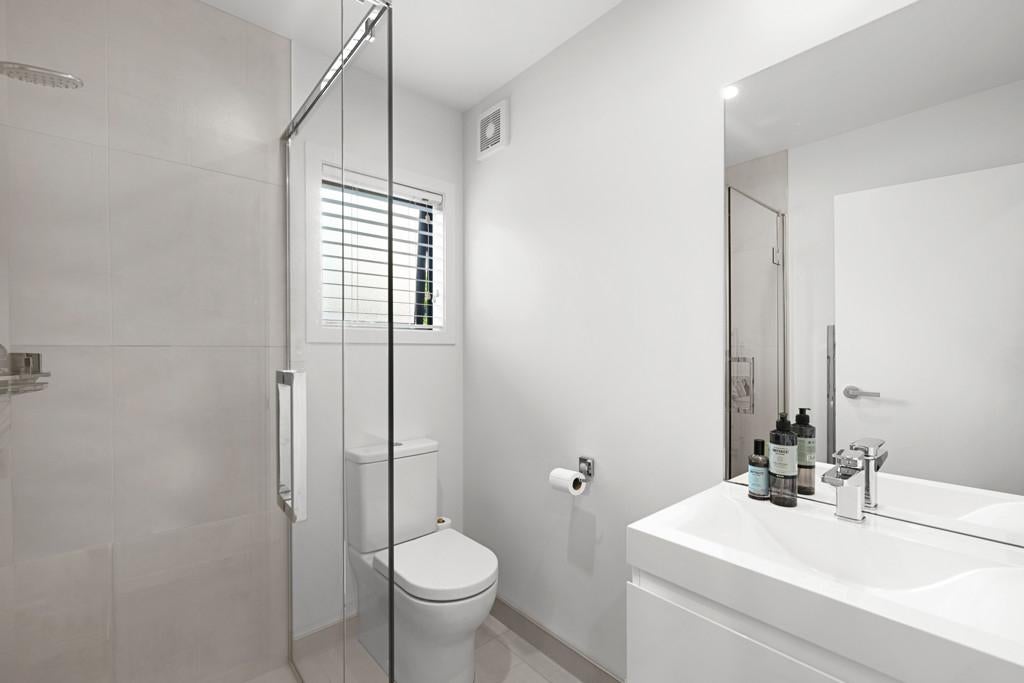 Accommodation is thoughtfully arranged to provide both flexibility and privacy. Two well-proportioned bedrooms are serviced by a modern family bathroom, while the master suite occupies its own level, creating a peaceful retreat complete with walk-in wardrobe and ensuite. Bathrooms are finished to a high standard and feature sleek vanities and fully tiled showers, reinforcing the home's modern aesthetic.