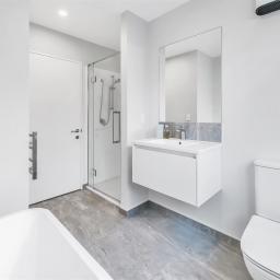 Accommodation comprises of 3 generous double bedrooms, with the master suite featuring a beautifully finished ensuite and a spacious walk-in wardrobe. The sleek family bathroom includes a shower, freestanding bath, and toilet for everyday convenience.