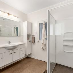 Inside, the home offers a well-balanced layout featuring three bedrooms, 3.5 bathrooms (two are ensuites), open plan kitchen/dining/lounge. The heat pump and wood fire keep things cosy through winter. Also, there is a dedicated laundry, and excellent storage. The internal access garage and basement area add practicality.