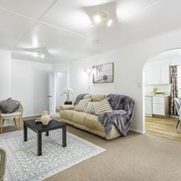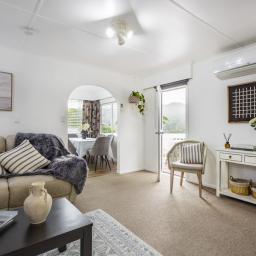 The heart of the home is a cozy living area, that flows seamlessly into the kitchen, creating an inviting atmosphere for family gatherings and entertaining friends.