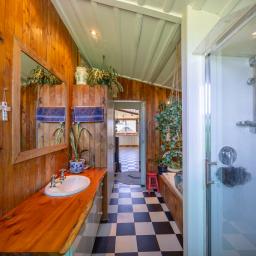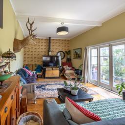 The villa has a large deck on two sides and flows to a private entertaining area off the lounge. The lounge has a free-standing wood burner to heat the open plan kitchen and living area in the cooler months. The lounge has French doors opening to the veranda and garden.