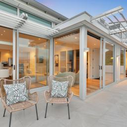Designed for effortless living and entertaining, the home features a generous open-plan lounge, dining and kitchen that flows seamlessly to the deck, making the most of the spectacular panorama. Gas heating keeps things cosy year round, while a second, more intimate living area opens to a sheltered courtyard - the perfect spot for quiet relaxation or morning coffee.
