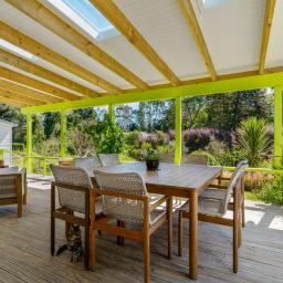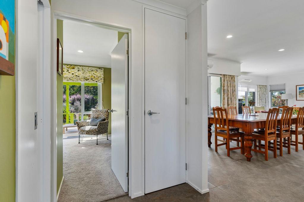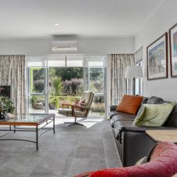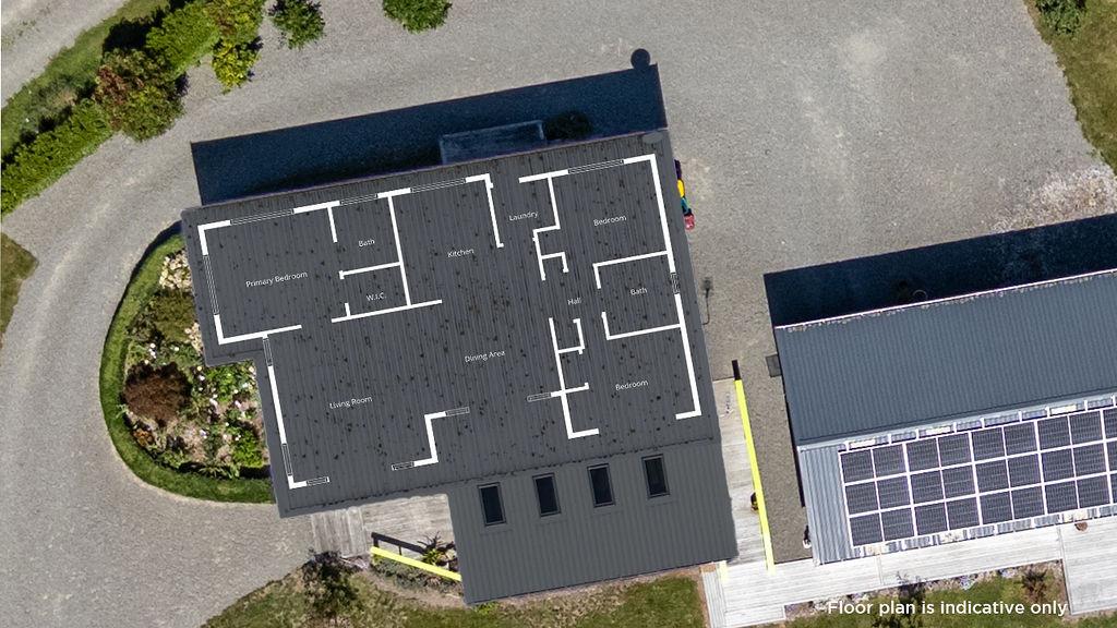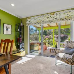 This delightful, sun filled home is nestled amongst an array of mature plantings and the expansive covered deck, an entertainers paradise, surveys a stand of assorted flaxes and natives, an attraction to all manner of birdlife. Various sliding doors open out to embrace the vista and bird song of nature at its best. Entering the home you are greeted by, spacious open plan living dining, a smart well equipped kitchen at the rear. The luxury of underfloor tiled heating throughout this space accompanied by two heat pumps, double glazing and full insulation ensures year round comfort. Master bedroom accessed from living offers ensuite and walk in robe. The additional two bedrooms at the other end of the home, one of which is currently utilized as an office, shares a family bathroom with vanity, shower over bath and WC. Separate laundry at the rear with back door access. The expansive front deck links the house and generous double garaging which is lined and has the bonus of studio which opens onto the deck and a hobby room which has the potential to further develop. Excellent off street parking at the front of the garaging. Solar panels sit proudly on the garage roof, north west facing for excellent sunshine hours. UV charger for those who have chosen to go electric. Wandering around the rambling garden you will find a miriad of fruit trees, berry cages and raised vegetable beds. The 2023sqm section is delightfully private and fully fenced. This is the perfect stage for those that love to entertain or just escape the maddening crowd.