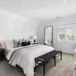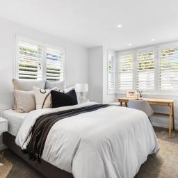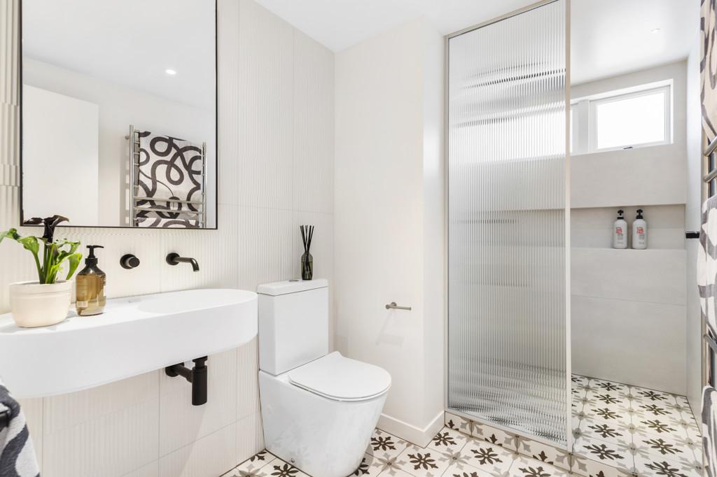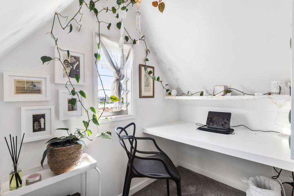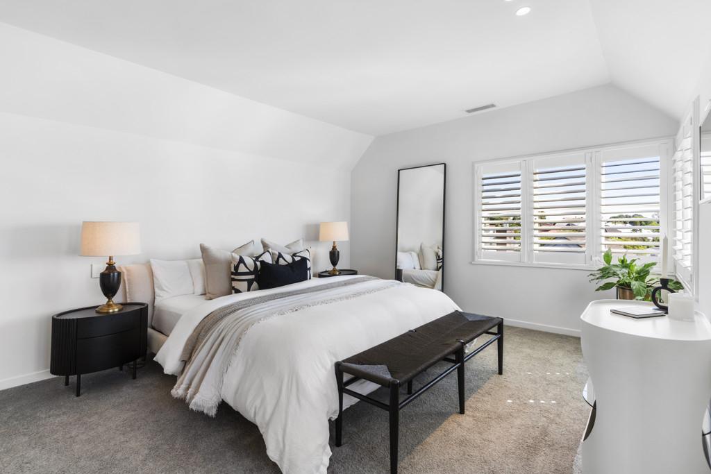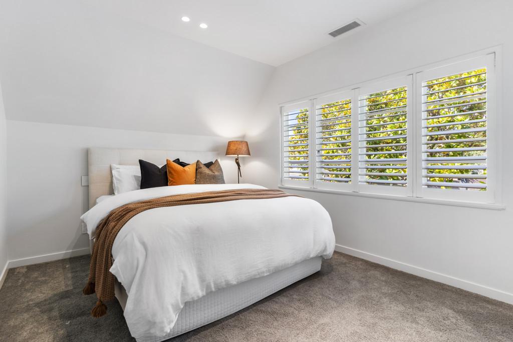 The top floor hosts two bedrooms, including the sun-filled main bedroom which enjoys privacy and beautiful views across the Remuera slopes toward Rangitoto Island. It features a spacious ensuite, a well-designed walk-in wardrobe, and a private office - perfect for quiet work or study.