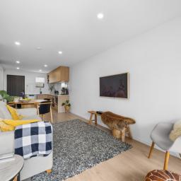 Step inside and you'll find a light-filled open-plan living and dining area, complemented by a sleek modern kitchen with quality appliances and excellent storage. The layout flows effortlessly to a generous outdoor deck, creating a great space to unwind, entertain friends, or enjoy summer evenings.