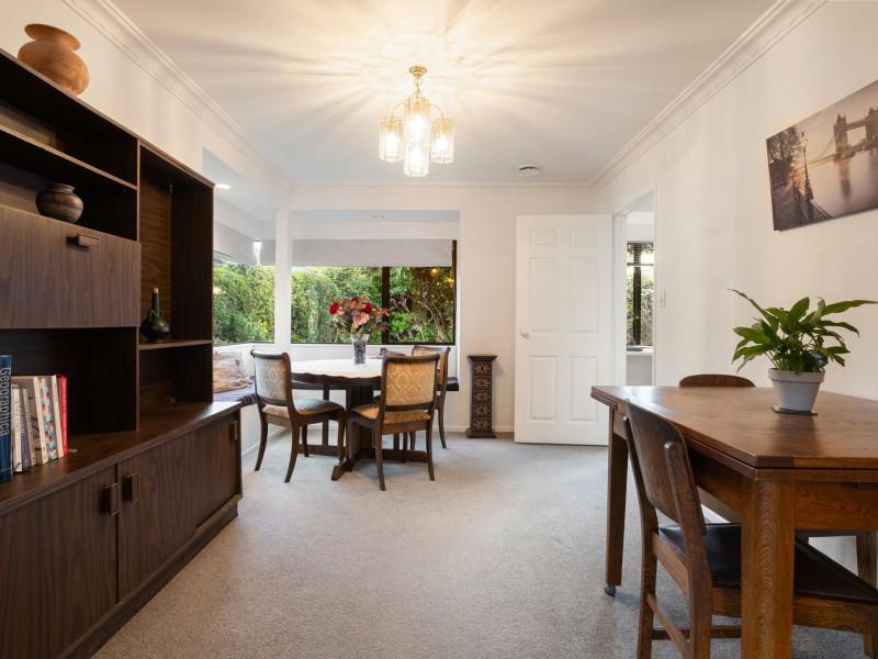 The heart of the home includes a sun soaked dining nook complete with a charming built in seat, creating the perfect space for relaxed family meals or morning coffee. With a spacious separate lounge and an additional seating area beside the kitchen, the floor plan works well for the day to day. Outside, the fully fenced section is complemented by established gardens that provide privacy and a pleasant outdoor setting, while the double garage adds practicality and extra storage.