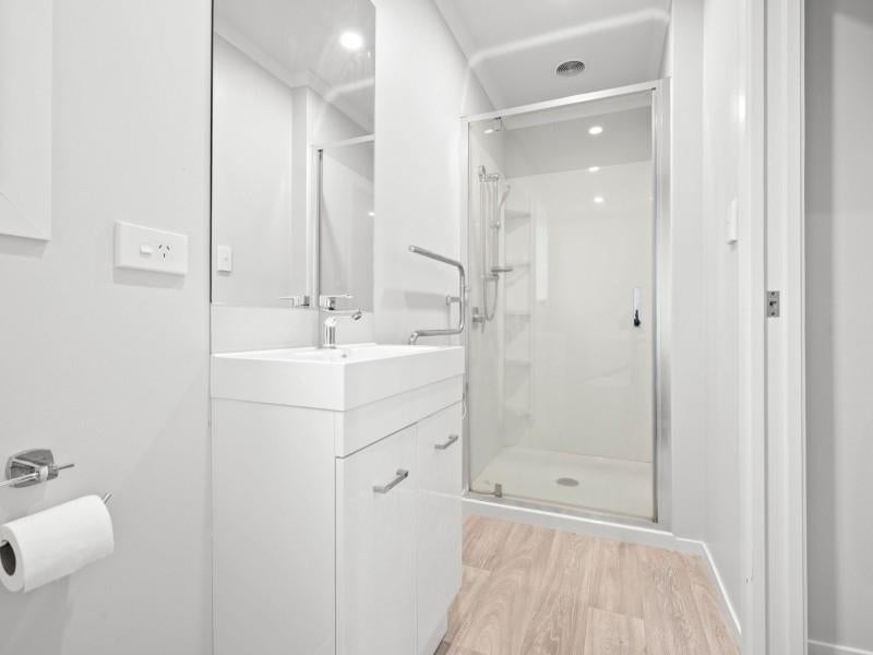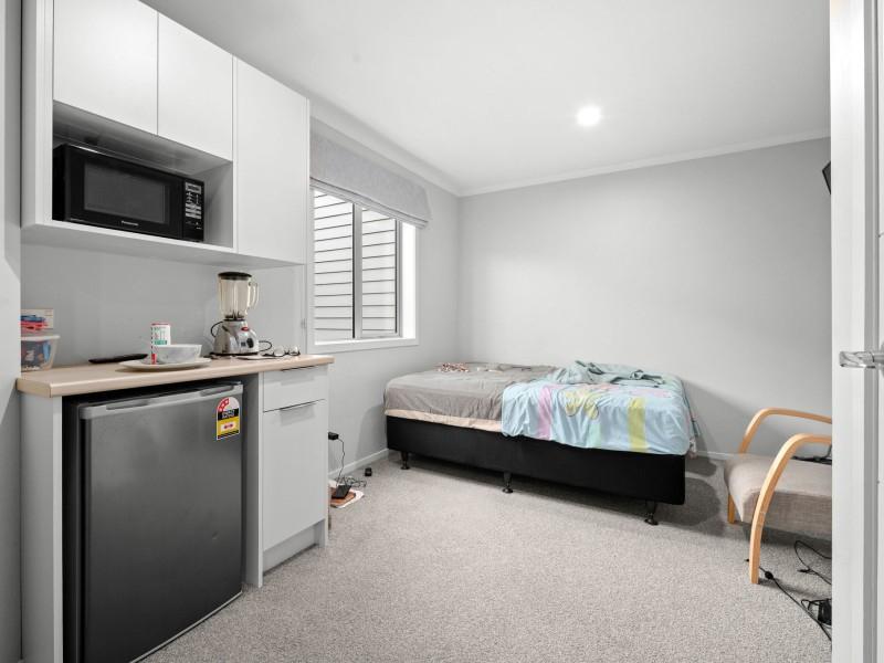 This modern residence is configured into four fully self-contained studio units, each furnished for convenience and independence. Every studio is thoughtfully appointed with its own kitchenette and private bathroom, offering tenants everything they need in a low-maintenance setting.
