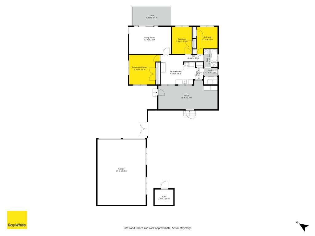Inside features three bedrooms, one bathroom, an open-plan kitchen and dining area, plus a separate lounge that flows out to a spacious, sunny deck. The native timber floors would look fantastic once sanded and polished, bringing warmth and character back to the home.