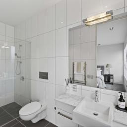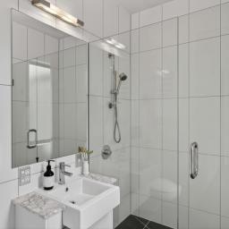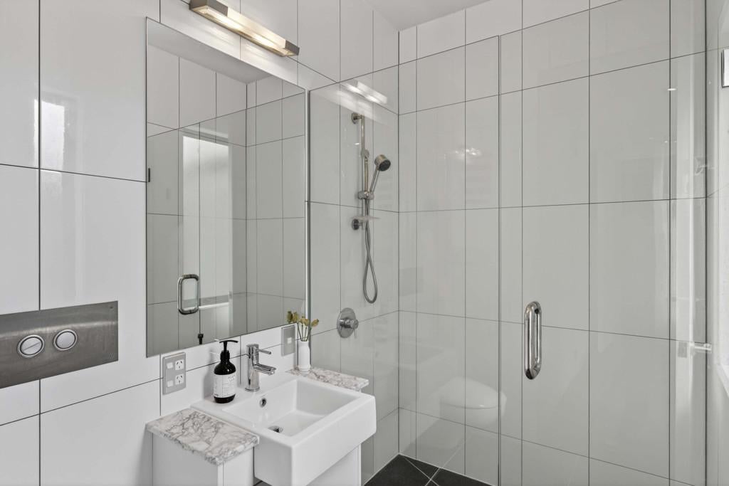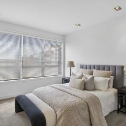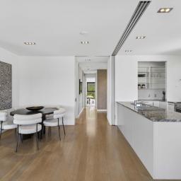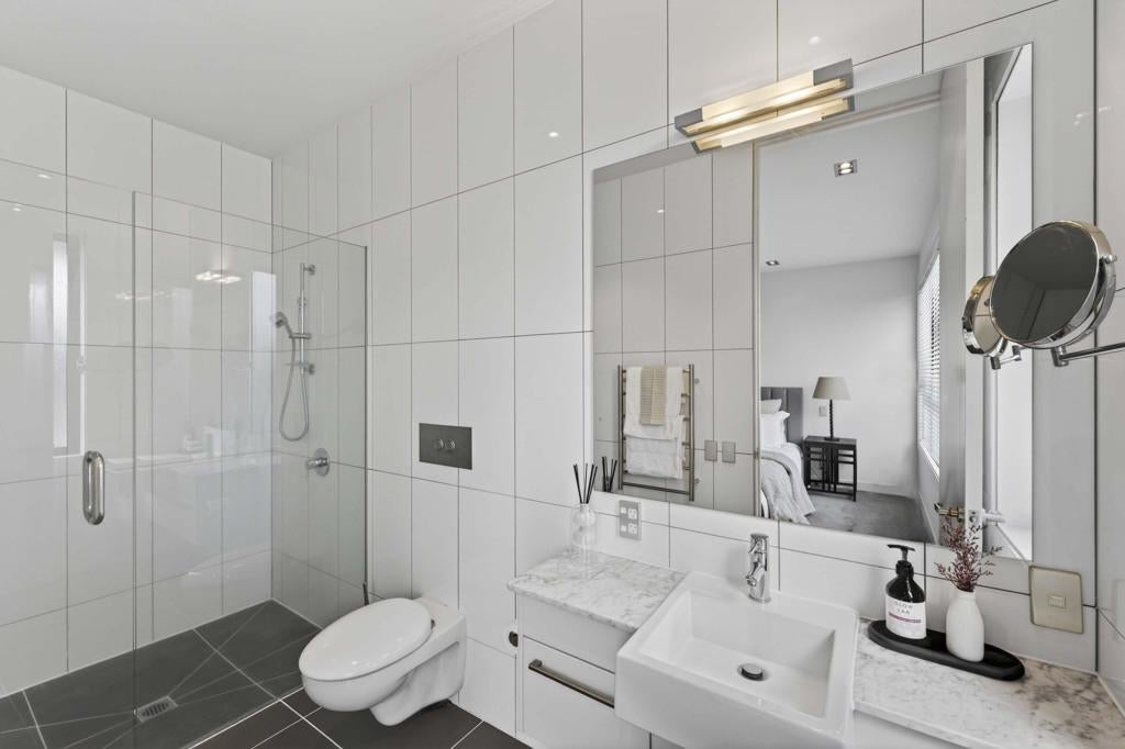 Designed for easy single-level living, the apartment accommodates two generous bedrooms, including a well-appointed guest suite with its own ensuite, along with a separate powder room for visitors. The master suite offers a peaceful retreat, complete with a walk-in wardrobe and spacious ensuite.