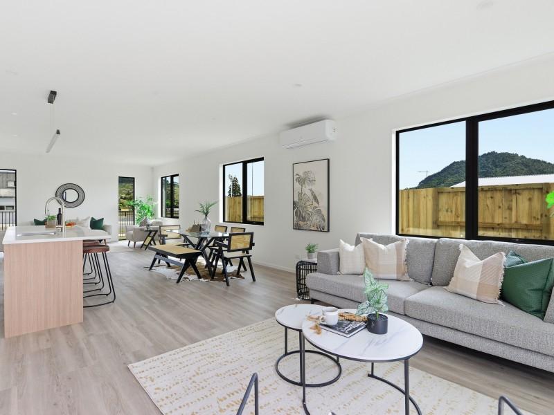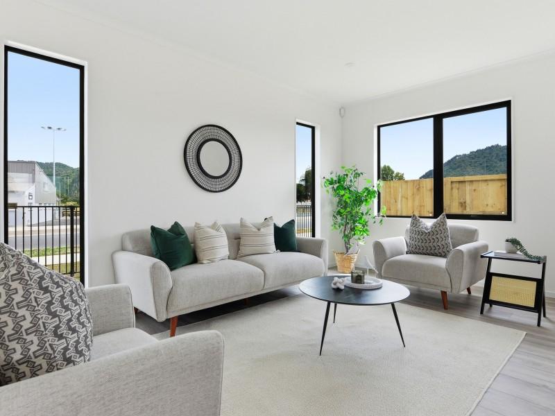 Brand new and beautifully positioned, this impressive 204sqm family home sits on a 539sqm freehold section, capturing elevated views of both Taupiri Mountain and the Hakarimata Range.