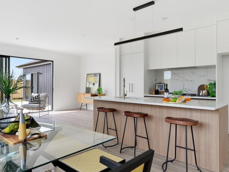The modern kitchen is positioned at the heart of the home, providing generous bench space, quality appliances, and ample storage — perfect for both daily family life and hosting guests.
