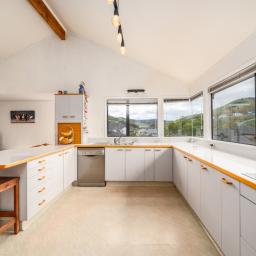 The lower entrance level has a double internal access garage and a bigrumpus room, and then upstairs to the balance of the house, with a supersize formal lounge and dining room, and a big open plan kitchen/familyroom with a vaulted ceiling, and a sliding door to a flat fenced sheltered garden and lawn ideal for all members of the family for entertaining and play.