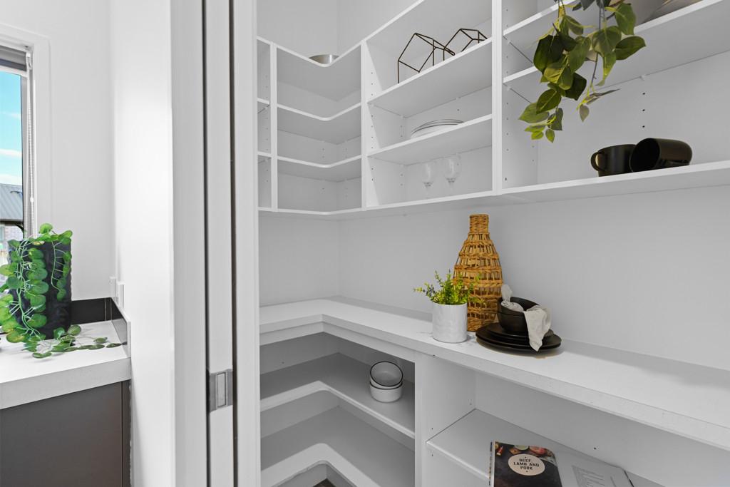 The kitchen sits naturally at the centre of the home, offering generous bench space and practicality, complemented by a walk-in pantry that keeps the main space uncluttered and functional.