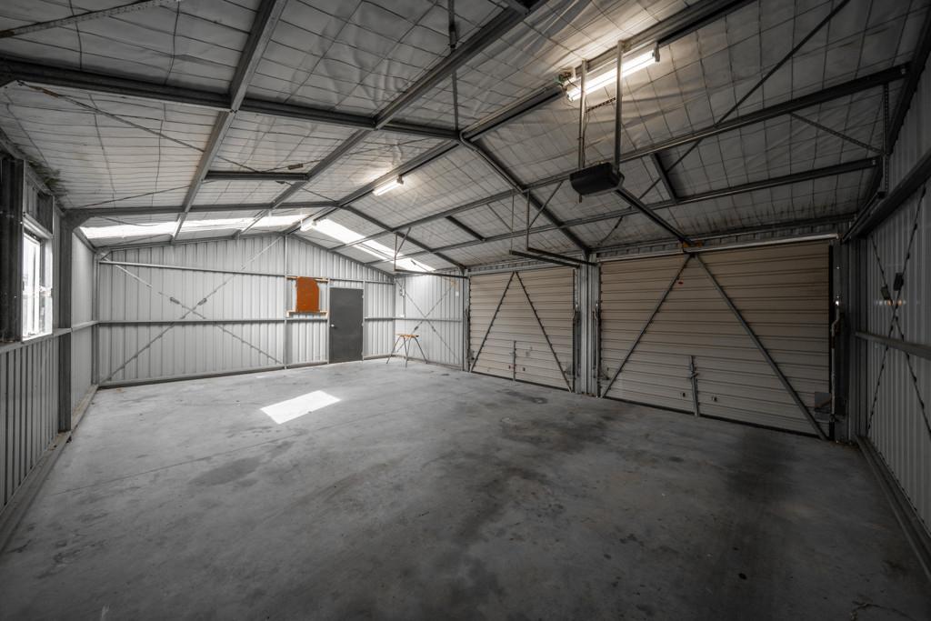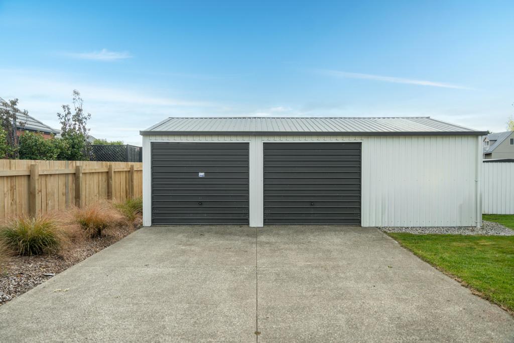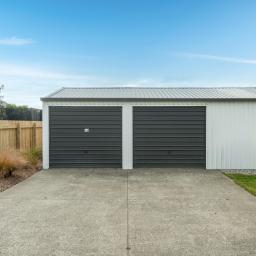 • Large detached garage (approximately 6m x 9m) with one automatic and one manual door