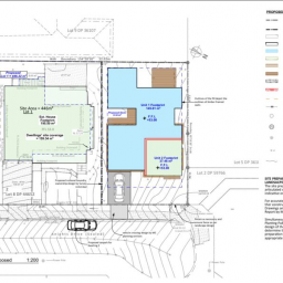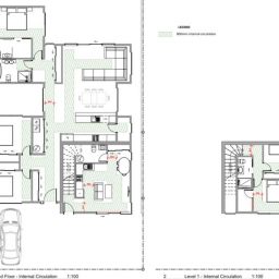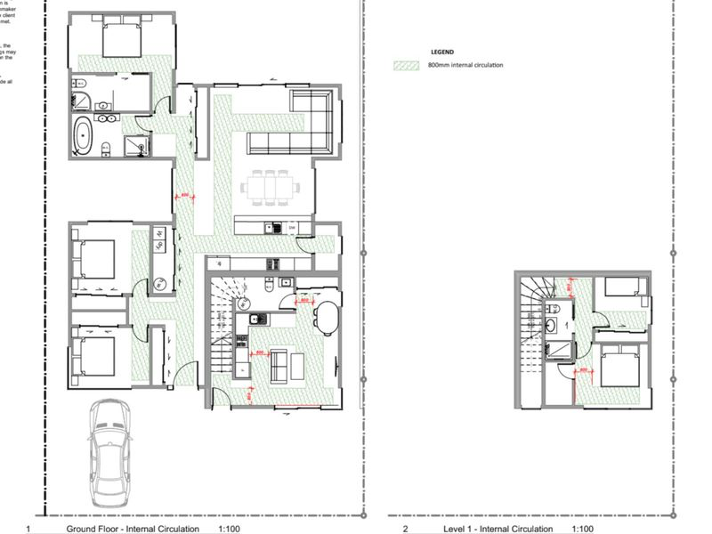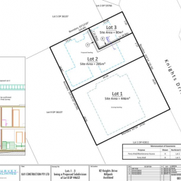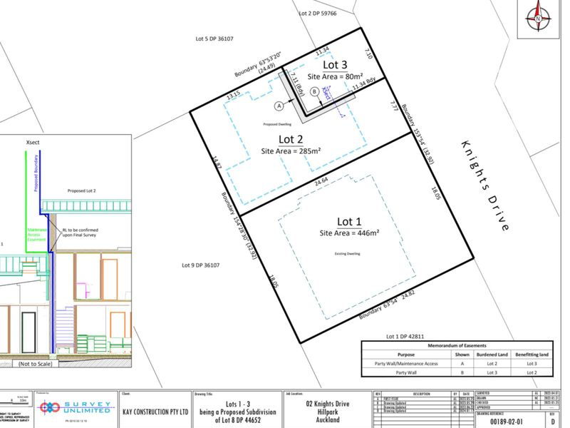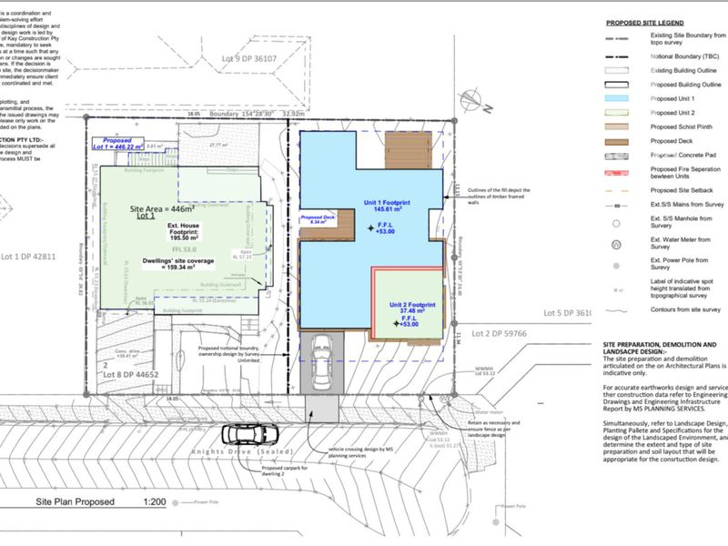 Lot 1: Existing home - 446m² land, approximately 200m² floor area.