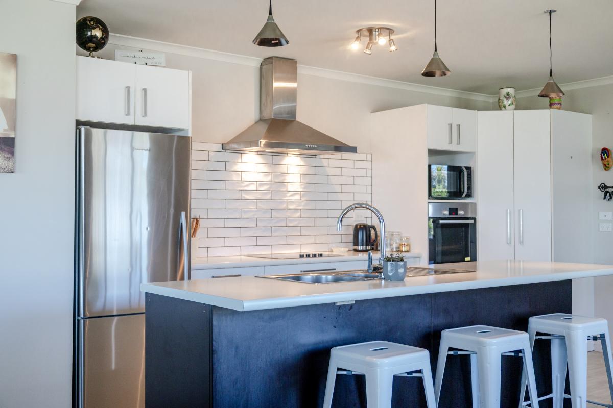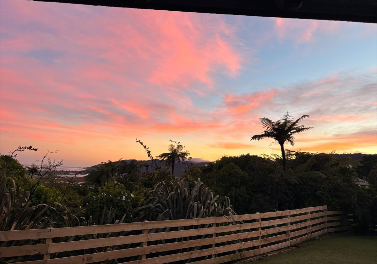 This home has a special outlook. By day you can sip your morning coffee while looking out over Greymouth and the Tasman Sea, birdsong drifting through the air. By night, the twinkling lights of the town below create a quiet, almost magical backdrop - a view that never really gets old.