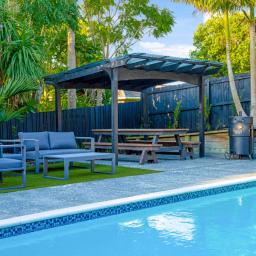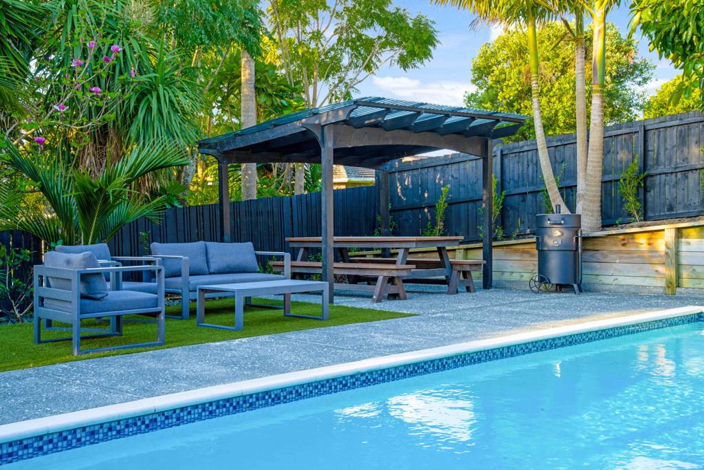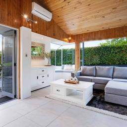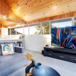 At the centre, the renovated kitchen anchors it all, breakfast bar mornings, long evenings with friends, doors opening wide to the garden and pool. Entertaining is effortless here. Summer swims, winter movies, spa nights year-round, it's all part of the lifestyle.