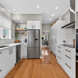 A formal dining area connects to the backyard, ideal for family meals and entertaining, while the modern kitchen is filled with natural light and positioned to overlook the garden, keeping you connected to family life both inside and out.