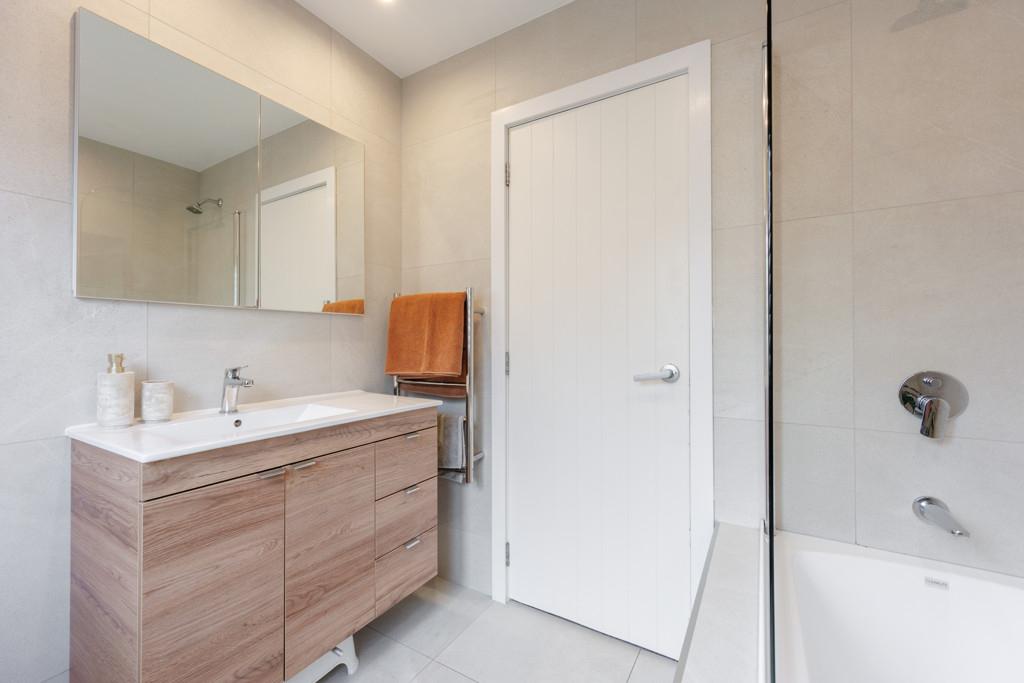 In the heart of the home, the modern kitchen features oversized windows that let in light and sunshine, seamlessly flowing into a generous living area. Large bifold doors open wide to the deck and backyard, enhancing the superb indoor-outdoor flow that makes entertaining a breeze. The covered deck, equipped with a louvre system and blinds, ensures year-round enjoyment, rain or shine!