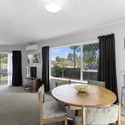 The home features three well-proportioned bedrooms, providing flexibility for families, guests, or even a home office. A modern bathroom services the home, with the added convenience of a second toilet. You'll also appreciate the practicality of a separate laundry, adding extra space and functionality to the home. Central radiator heating keeps the house cosy in winter, and a heat pump helps cool it down on a hot summer's day.