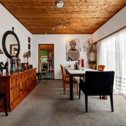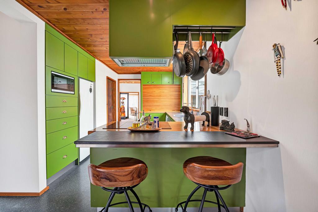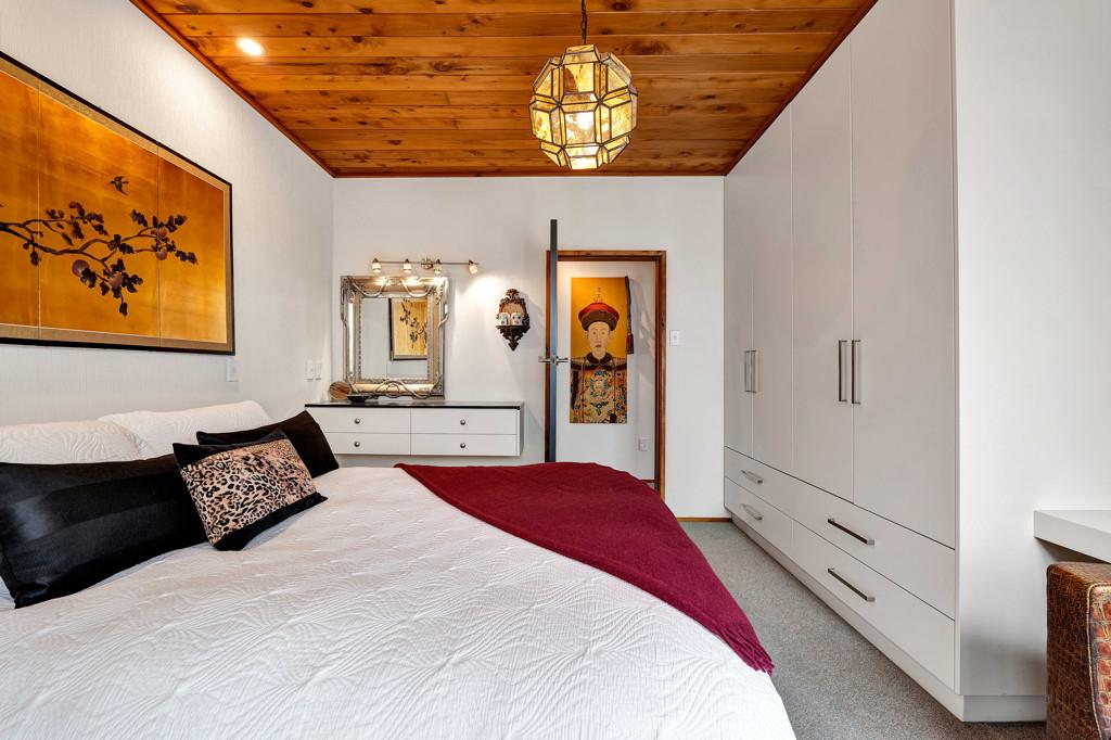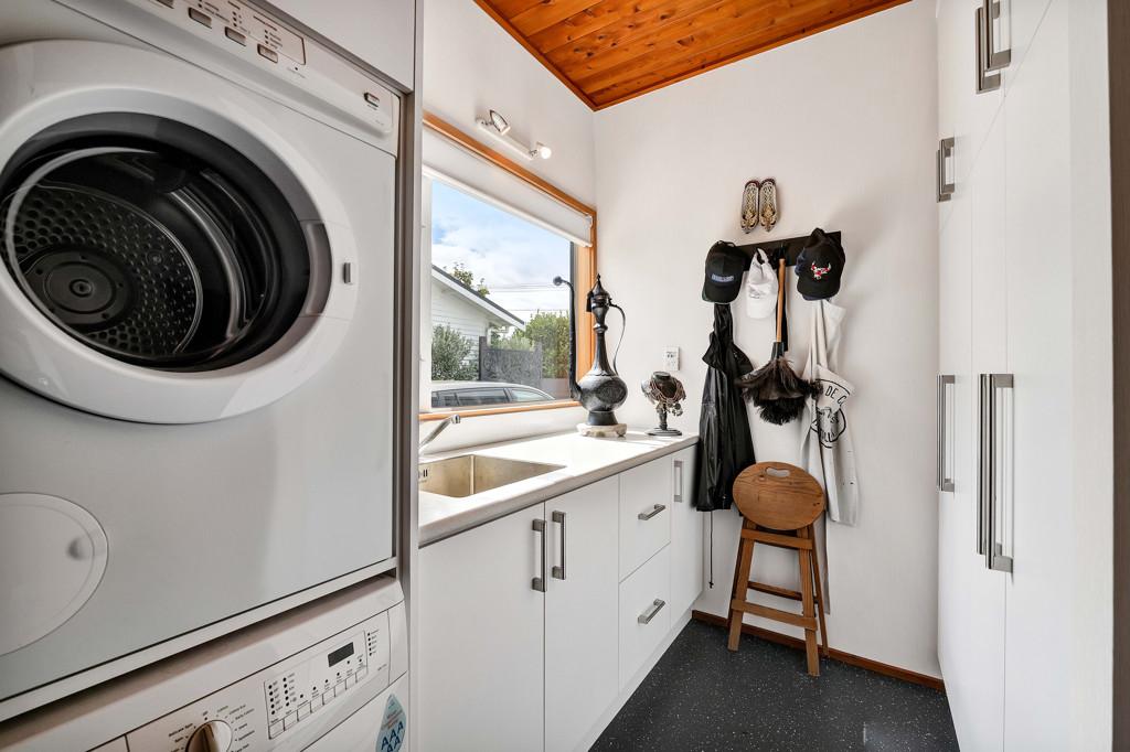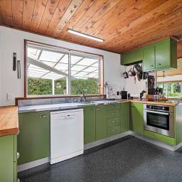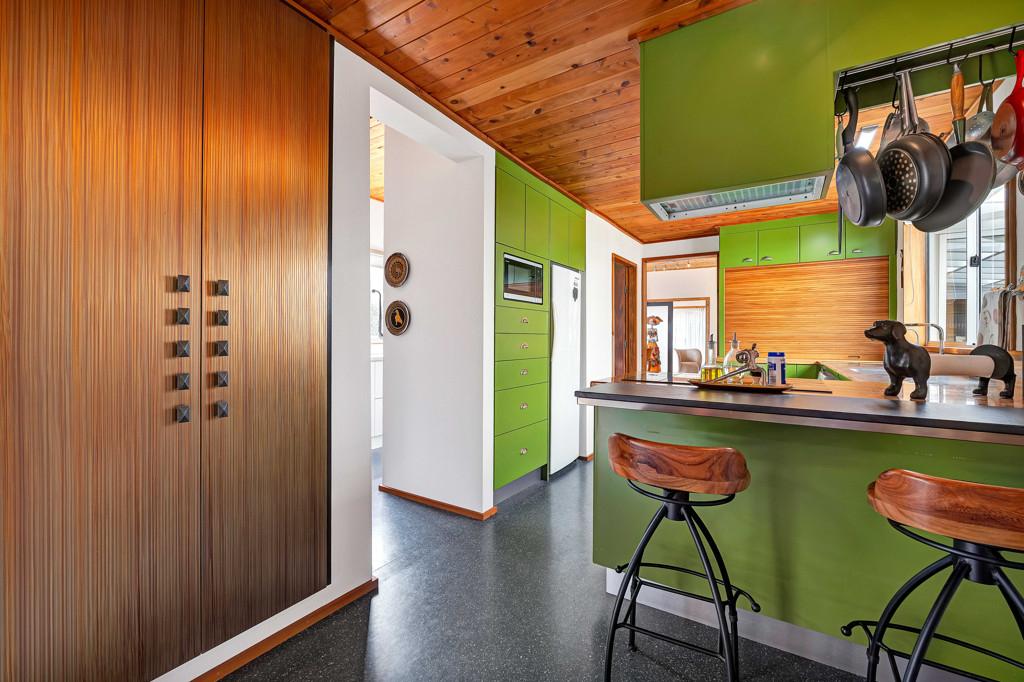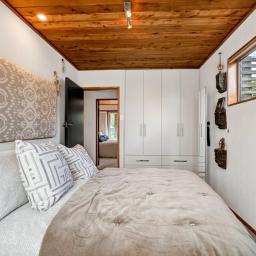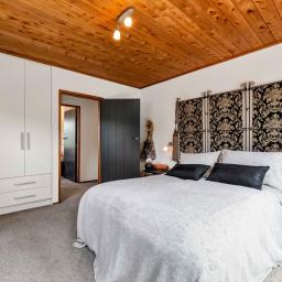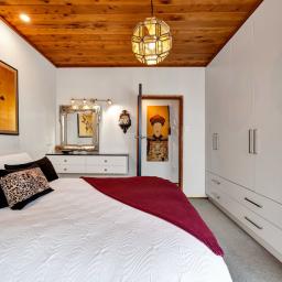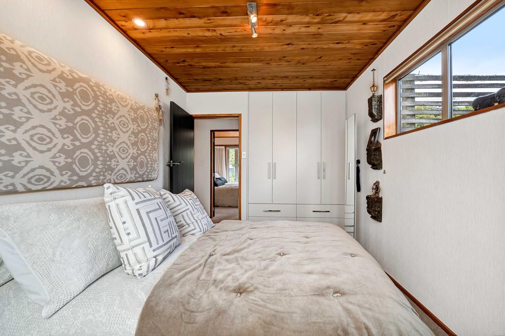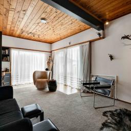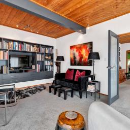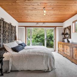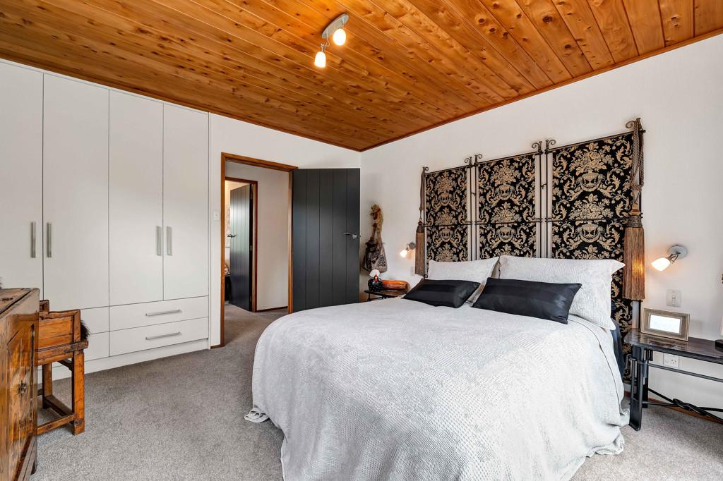 Prepare to be wowed. Look up, and you're greeted by the rich, honeyed tones of the stunning macrocarpa ceilings that run throughout the home, grounding every room in warmth. But the beauty here is in the details. From the bespoke kitchen to every corner of the house, you'll find master-crafted Bruce Gyde cabinetry. It's storage as an art form - functional, elegant, and timeless.