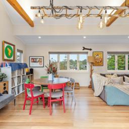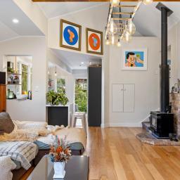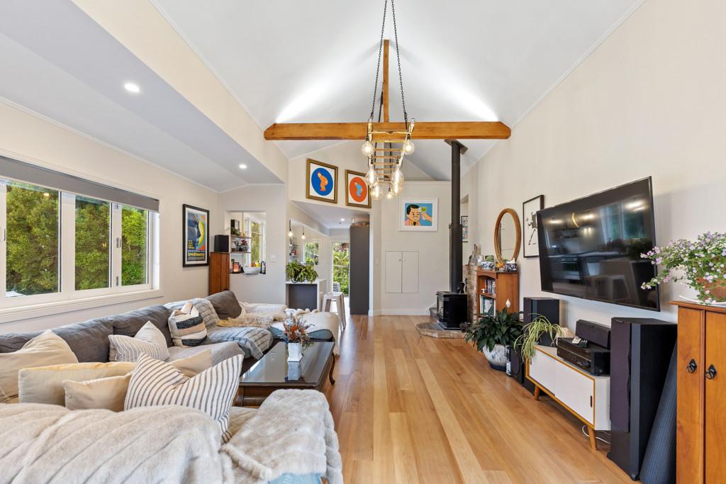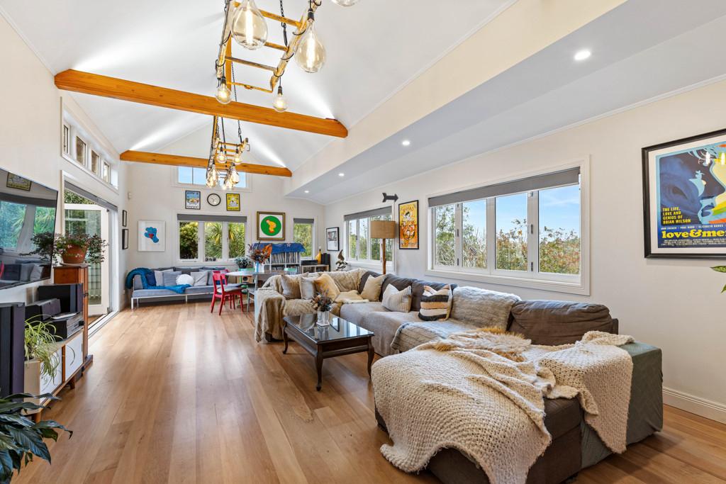 Constructed in timeless weatherboard, this family friendly split level home raises the bar for everyday living. Soaring vaulted ceilings with exposed timber beams, double glazing, newly polished rimu floors and statement pendant lighting thoughtfully crafted by its owners all come together to create an impressive living space. Sun filled and bathed in natural light, this warm and peaceful space is one you will truly look forward to coming home to.