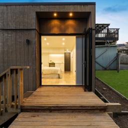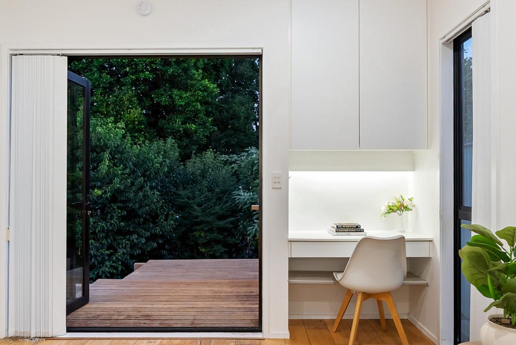 The main residence features two well-sized bedrooms, a family bathroom, and a light-filled open-plan kitchen, dining, and living area that flows seamlessly onto a sunny deck - the perfect spot for family entertaining and summer BBQs while enjoying tranquil views over the surrounding trees and bush.